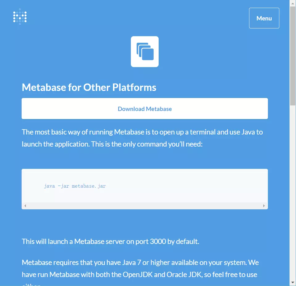 注意:Metabase官方开发团队在其官网上就Java的需求版本进行了声明。要求Java的版本至少是1.7以上的,至于是OracleJDK还是OpenJDK没有要求,都是可以的。