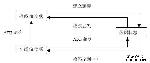 在发送AT命令时称为命令状态,在发送PPP包时或者语音通讯时称为数据状态。
