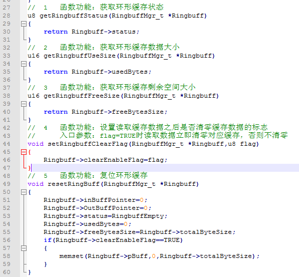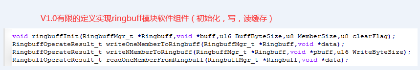在上一篇文章中仅对Ringbuff模块实现了有限的几个函数,如下图所示: