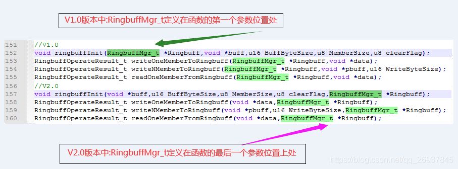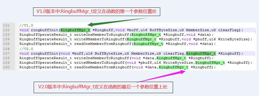 现在修改“ringBuff”中的函数参数位置如下图所示: