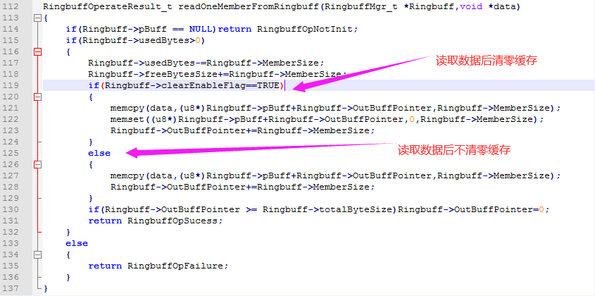 如上图所示,假如“小李”开发了V1.0版本的Ringbuf管理器,后面“小宋”接手维护修改如V2.0的样子,也不添加功能,也没有重大修改,仅仅因为个人原因(比如看着“RingbuffMgr_t”在第一个位置不舒服),至此V1.0到V2.0从“小宋”手里开始分道扬镳。因为引用V1.0版本Ringbuff组件的旧程序已经不容易迁移到V2.0的Ringbuff,即使不怕麻烦,也多了一个迁移过程,还有衍生出来的验证,测试过程等等。所以,从代码逻辑上说,功能完全没问题;从代码可维护,易用,延续,传承上带来很多麻烦。可见遵守“开闭原则”的重要性。