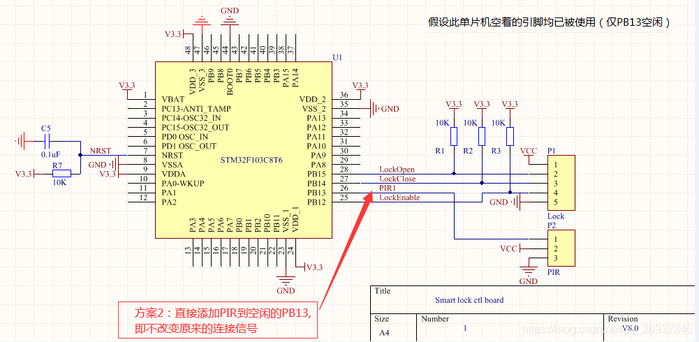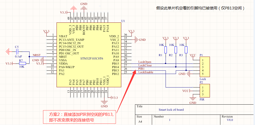 由于市场需求需要增加人体识别PIR传感器,需要对V7.0版原理图 “更新”。现在有以下两种更新方案,如下图所示: