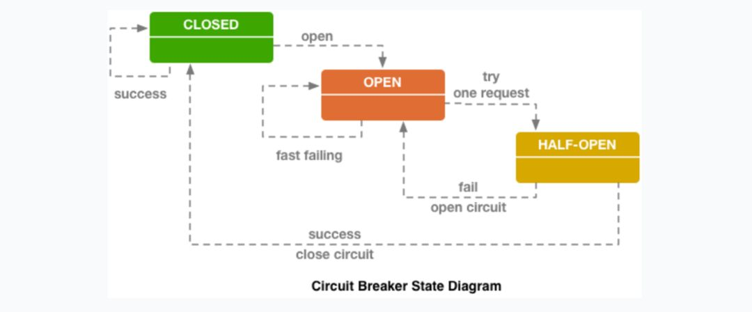内部机制采用的是断路器模式,其内部状态转换图如下:
