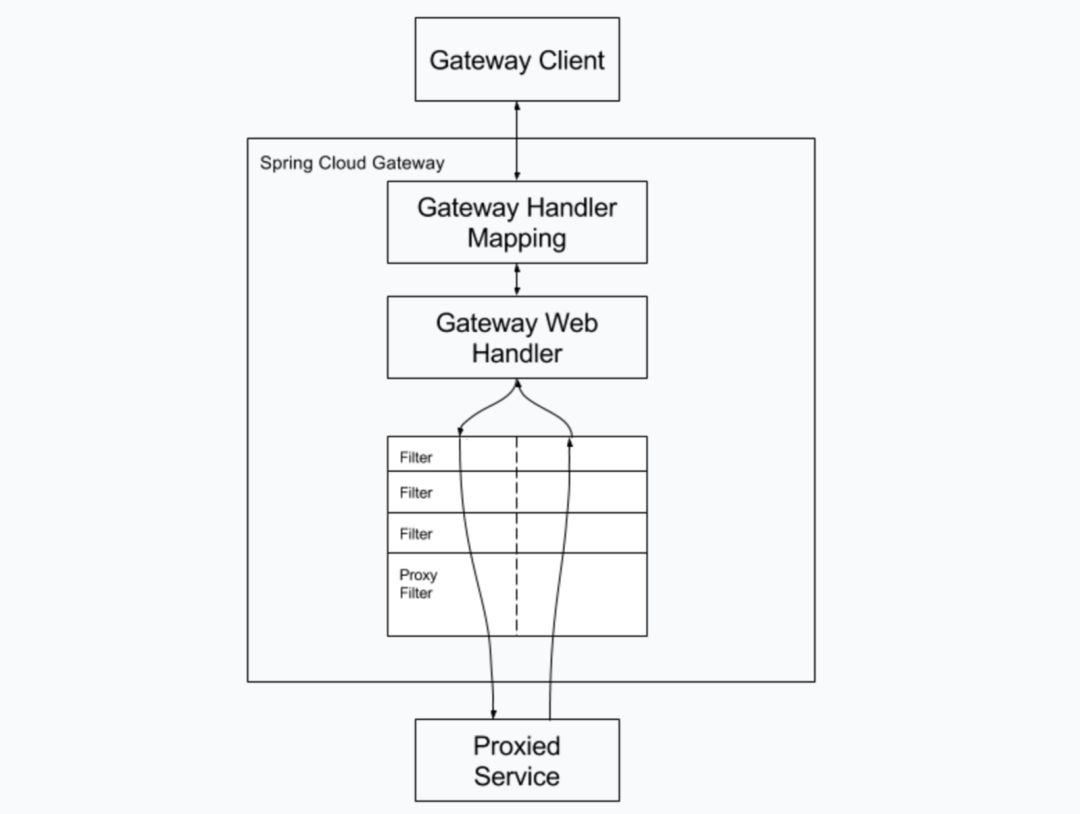 Spring Cloud Gateway (基于 Spring WebFlux)的工作机制大体如下: