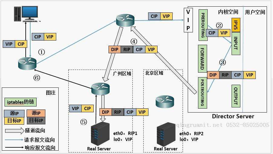调度器把请求报文通过 IP 隧道转发至真实服务器,而真实服务器将响应直接返回给客户,所以调度器只处理请求报文。要求真实服务器支持隧道协议和配置 VIP。