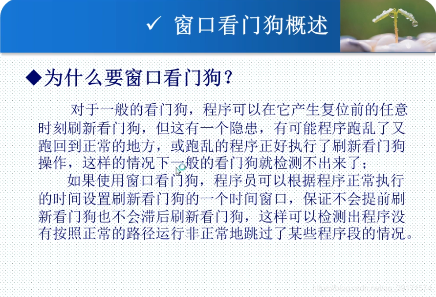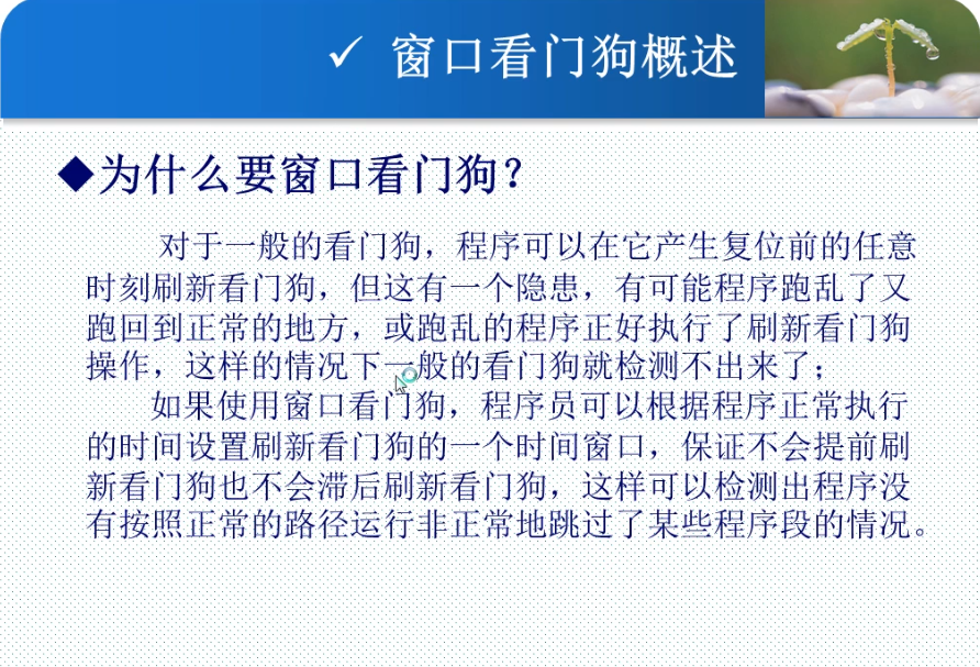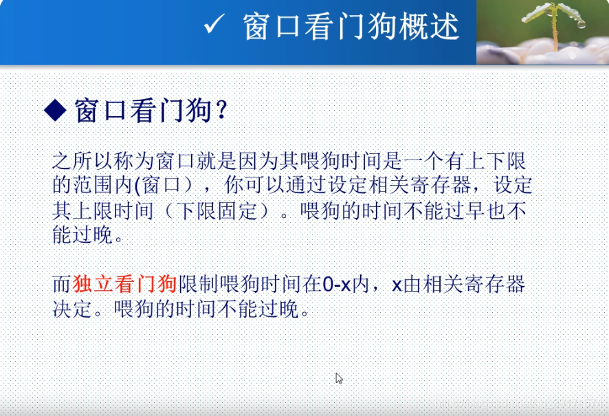 既然已经有独立看门狗,为何还需要窗口看门狗?窗口看门狗可以使时间控制得更精确,可以处理独立看门狗忽略的地方