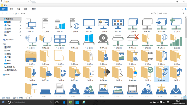 超级扁平又美观有没有!很想要有没有!这是微软在9860版本中使用的图标,不知道哪个天杀的把这么可爱的图标统统干掉了,把这个替换掉现有的图标,审美三年之内不会疲劳啊!