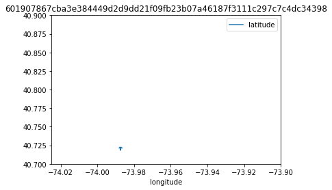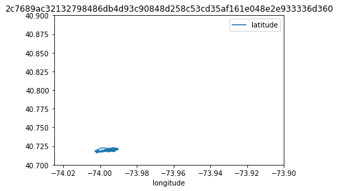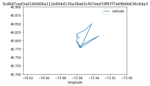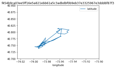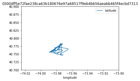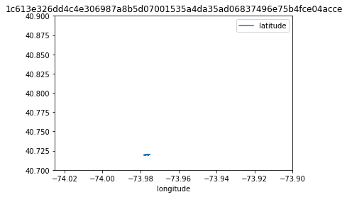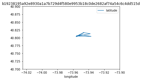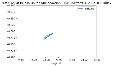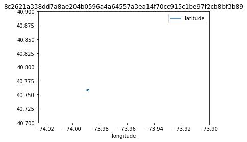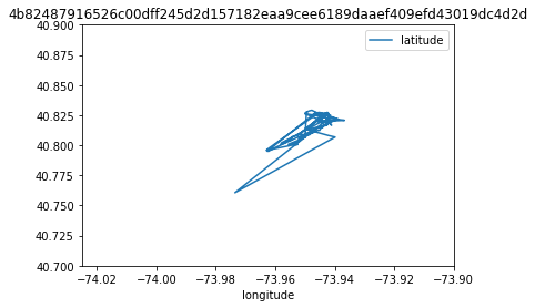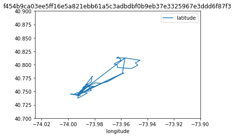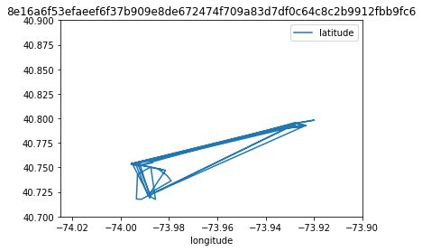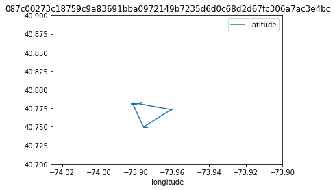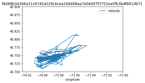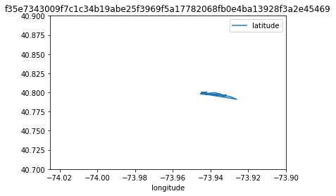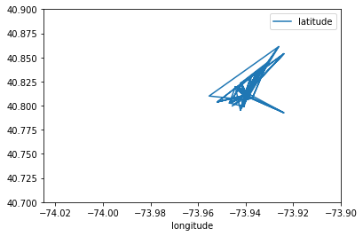 d.plot(x="longitude", y="latitude", kind="line" , xlim=(-74.025, -73.9), ylim=(40.7, 40.9))