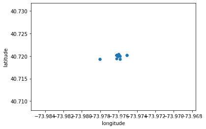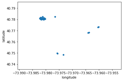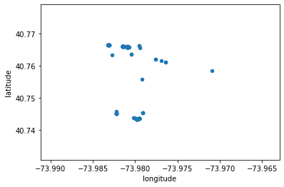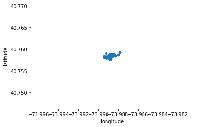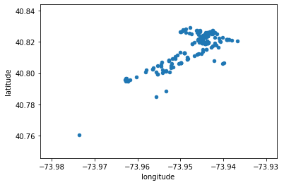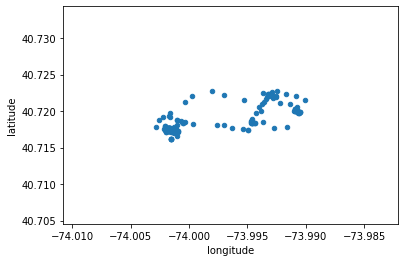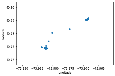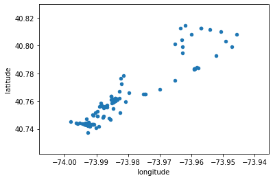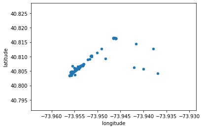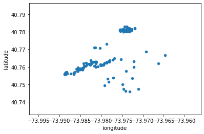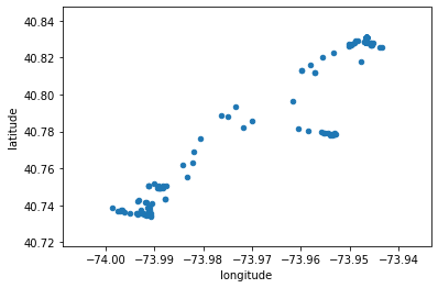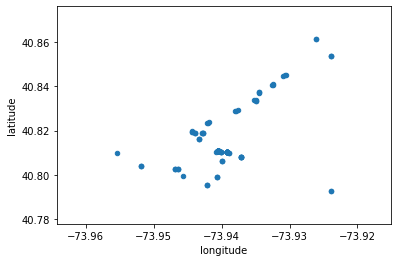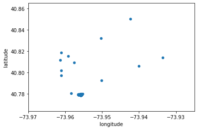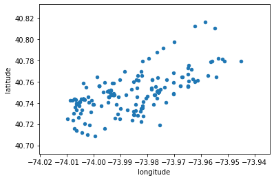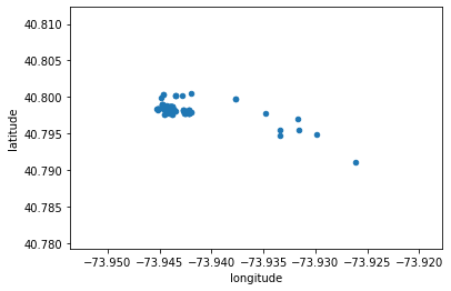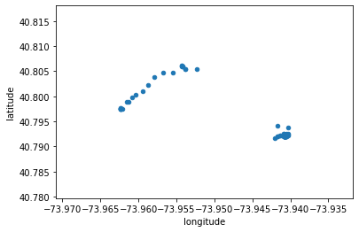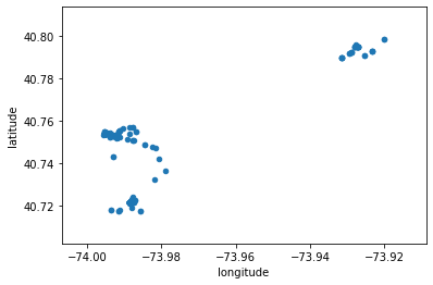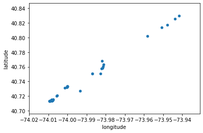 d.plot(x="longitude", y="latitude", kind="scatter")