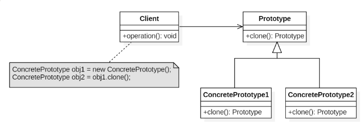 1)使用原型实例指定要创建对象的类型,通过复制这个原型来创建新对象。