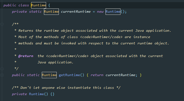 4.jdk中使用到单例模式的栗子: java.lang.Runtime(使用了上述的2.1 采用了静态常量的饿汉式实现)