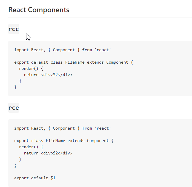 4.rcc+tab键(官网地址https://marketplace.visualstudio.com/items?itemName=dsznajder.es7-react-js-snippets)