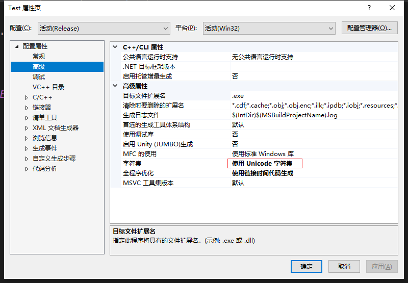 我们发现编写C++代码时这里的字符集的修改好像没有什么作用,没错C++的实现是有具体的标准的,不是微软可以改变的,那么这里的字符集有什么用呢?