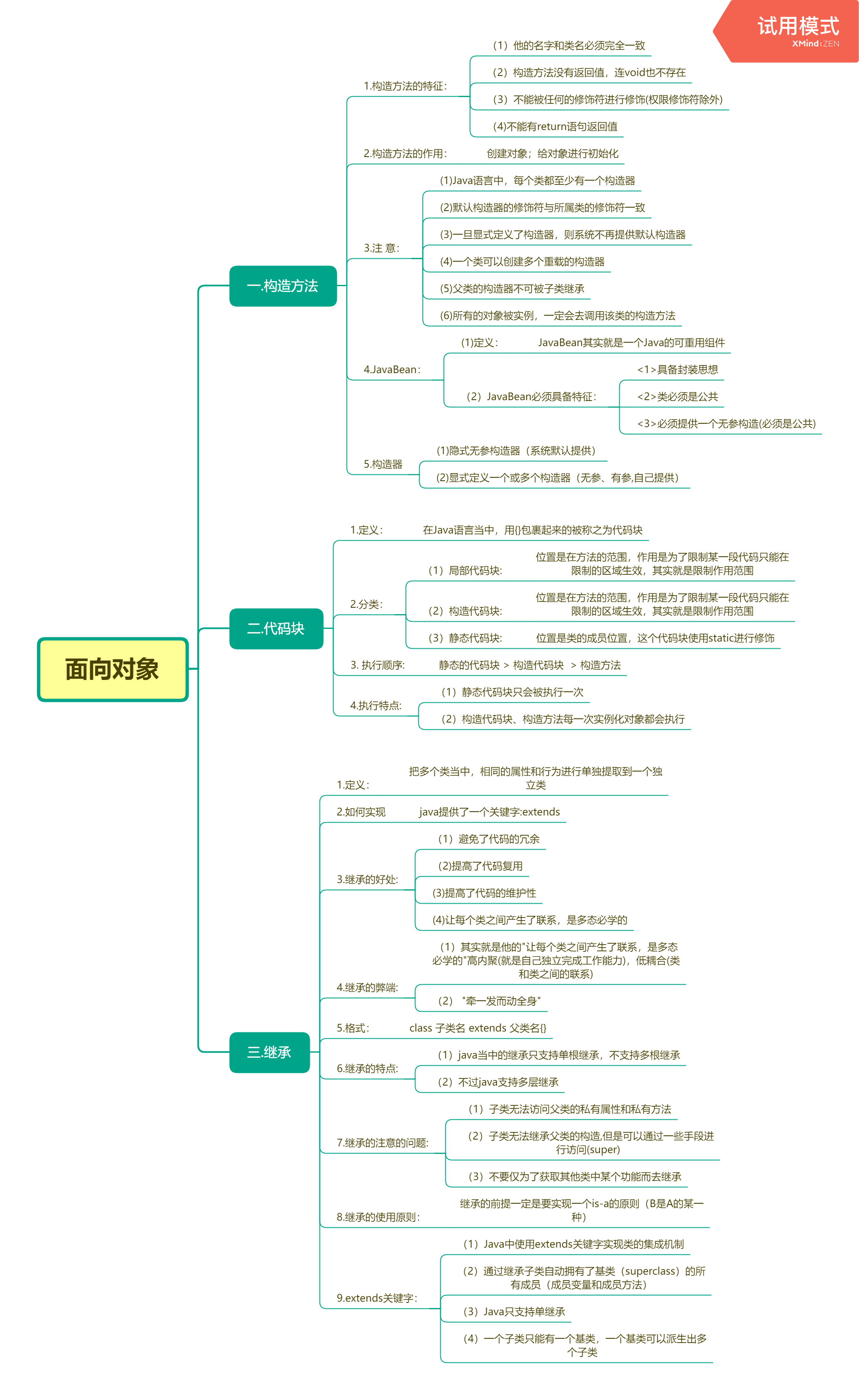 "今天java基础主要学习了面向对象的构造方法的概念,特征,作用,分类,注意事项,JavaBean;代码块,继承的概念,特点,好处,缺点,this和super的区别,继承的注意的问题,构造方法的关系,extends关键字等。 "