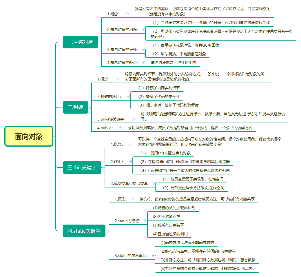 "今天java基础主要学习了面向对象的匿名对象,封装,this关键字,stastic关键字,public static void main(String []args){}每个关键字的作用等。"