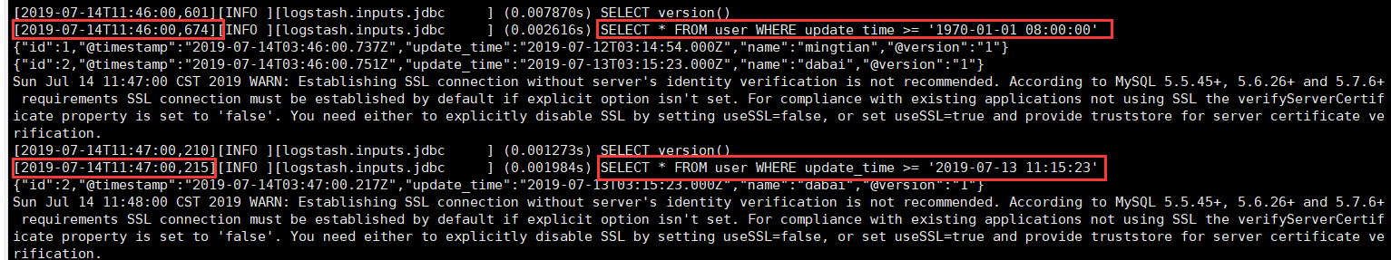 第一次查询 sql: SELECT * FROM user WHERE update_time >= '1970-01-01 08:00:00'; // updateTime 系统开始时间:1970-01-01 08:00:00