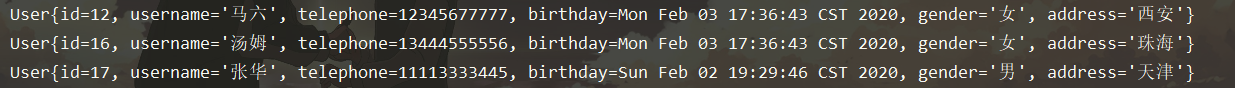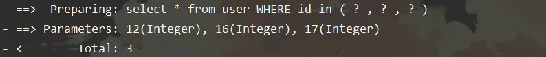 本例中,我哦们使用了 select * from user where id in (12,16,17) 这种形式,如果想使用 or那种形式,只需要修改拼接格式就可以了