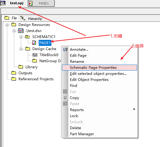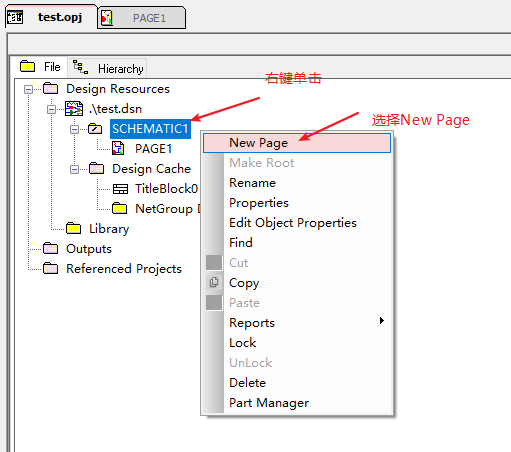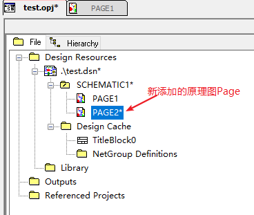 默认工程中只包含一页原理图Page1,如果需要分页,添加多页原理图,操作如下: