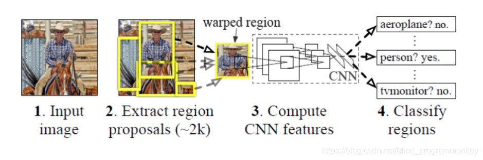 - 1.候选区域生成:一张图像采用 Selective Search生成1k~2k个候选区域Region Proposal