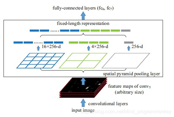 SPP Net的作者何凯明考虑到,既然由于全连接FC层的存在,普通的CNN需要通过固定输入图片的大小来使得全连接层的输入固定。那借鉴卷积层可以适应任何尺寸,为何不能在卷积层的最后加入某种结构,使得后面全连接层得到的输入变成固定的呢?