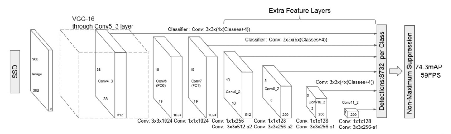 SSD论文采用了VGG16的基础网络,其实这也是几乎所有目标检测神经网络的惯用方法。先用一个CNN网络来提取特征,然后再进行后续的目标定位和目标分类识别。