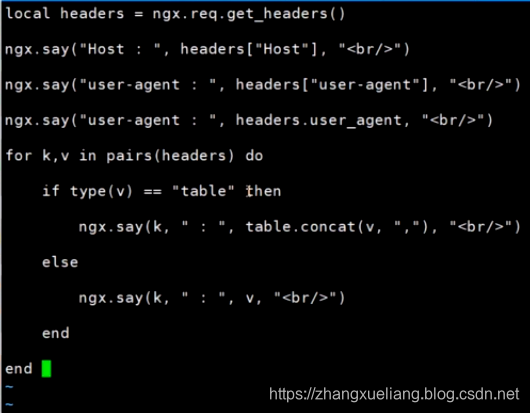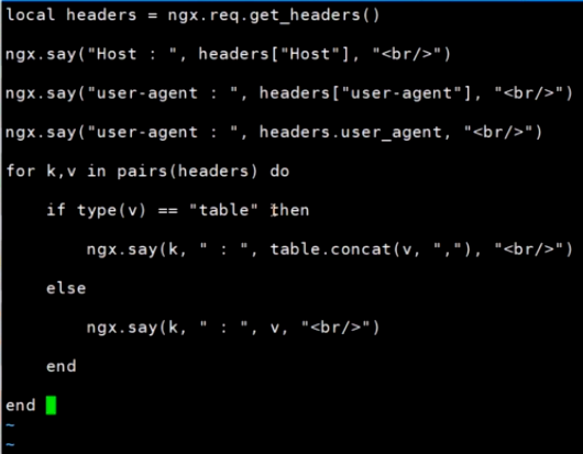 vi test.lua:在nginx.conf配置文件中已经指定了lua脚本了