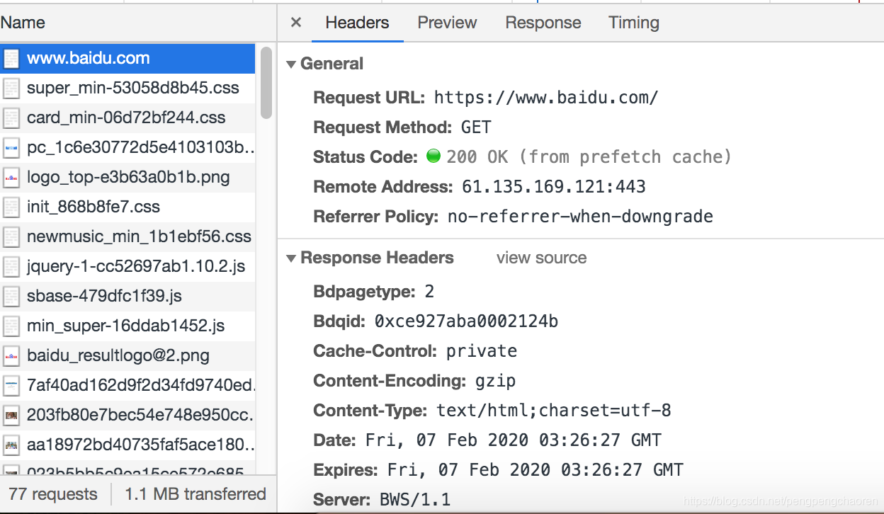 上图中general下包含的就是请求的原始信息,包含了请求方法为Get,请求的url,请求状态,以及远程地址等信息。下方的Response Headers则代表着服务器返回给浏览器的数据的头部信息,也就是说,服务器要给我浏览器返回数据,首先要满足我的协议格式要求,不然ServerA给我返回一个格式,ServerB返回另一个,明天来个C,D,E,F。。好嘛,你们一人一个格式,要把我浏览器累死啊,干脆,大家约定一个格式,你们按照这个给我返回,你嗨我嗨大家嗨!所以呢,我们自己写的服务器,也要按照这个格式给浏览器返回数据,不然人家不认。
