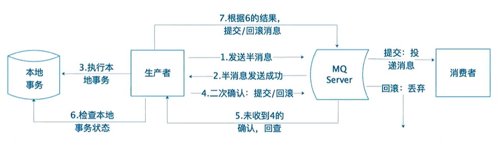 一般添加注解@Transactional(rollbackFor = Exception.class),发生异常,数据库就会回滚,但是由于有了MQ,发生异常后,数据库回滚了,但是MQ消息已经发出去了,就没办法取消了,基于这种情况,RocketMQ提供了事务消息。