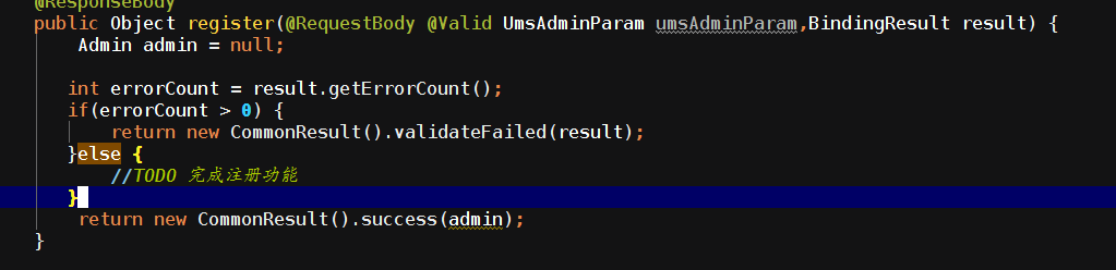 只需要给开启了校验的javaBean参数后面,紧跟一个BindingResult对象就可以获取到校验结果,只要有这个参数,即使校验错了,方法也会执行,我们需要手动处理结果,BindingResult有个方法getErrorCount()可以判断校验是否出错和出错的个数,所以可以通过判断校验是否成功来决定是否执行下面的代码