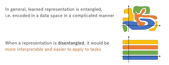 通常,无监督学习学到的特征是混杂在一起的,如上图所示,这些特征在数据空间中以一种复杂的无序的方式进行编码,但是如果这些特征是可分解的,那么这些特征将具有更强的可解释性,将更容易的利用这些特征进行编码。