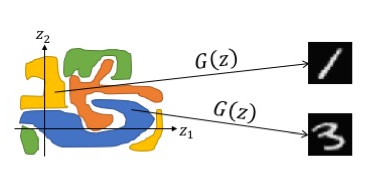 如果从表征学习的角度来看GAN模型,由于在生成器使用噪声z的时候没有加任何的限制,所以在以一种高度混合的方式使用z,z的任何一个维度都没有明显的表示一个特征,所以在数据生成过程中,无法得知什么样的噪声z可以用来生成数字1,什么样的噪声z可以用来生成数字3。