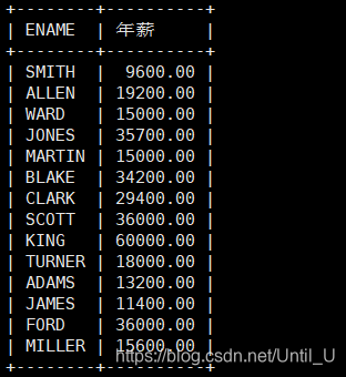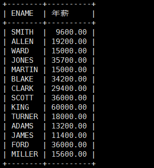 MariaDB [powernode]> select ENAME ,SAL*12 as '年薪' from EMP;