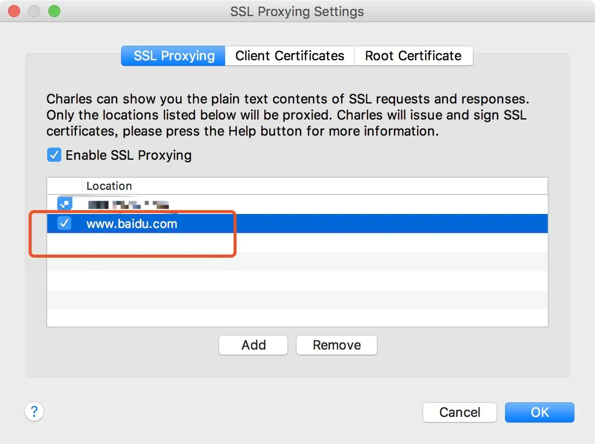 charles抓包出现乱码 SSL Proxying not enabled for this host:enable in Proxy Setting,SSL locations