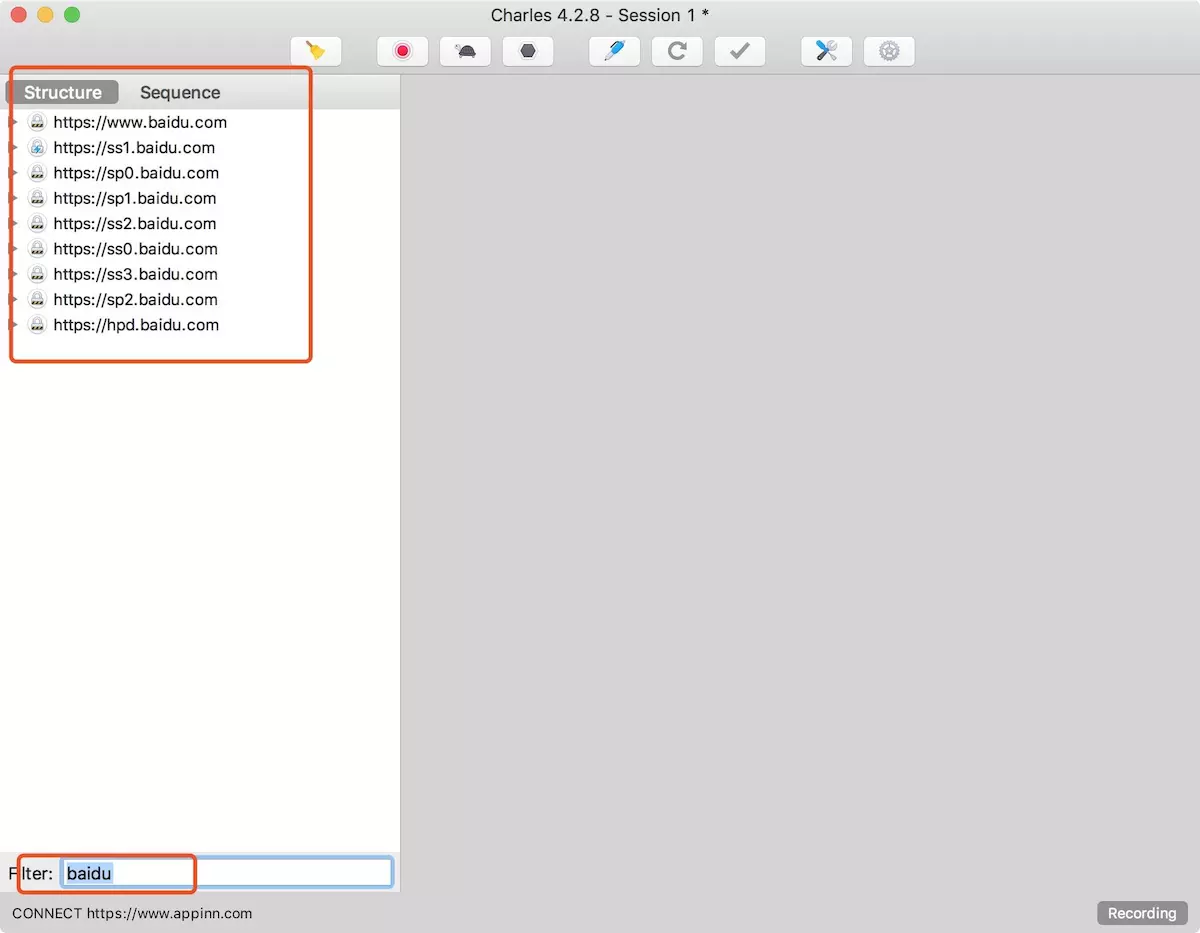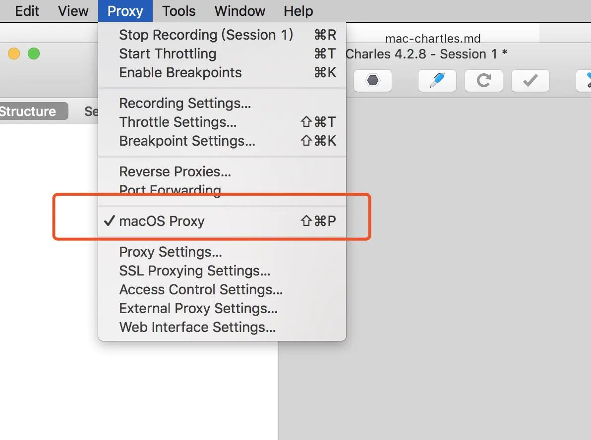 1、Proxy --> macOS Proxy 先打开代理,使得mac上所有请求都通过charles进行代理。