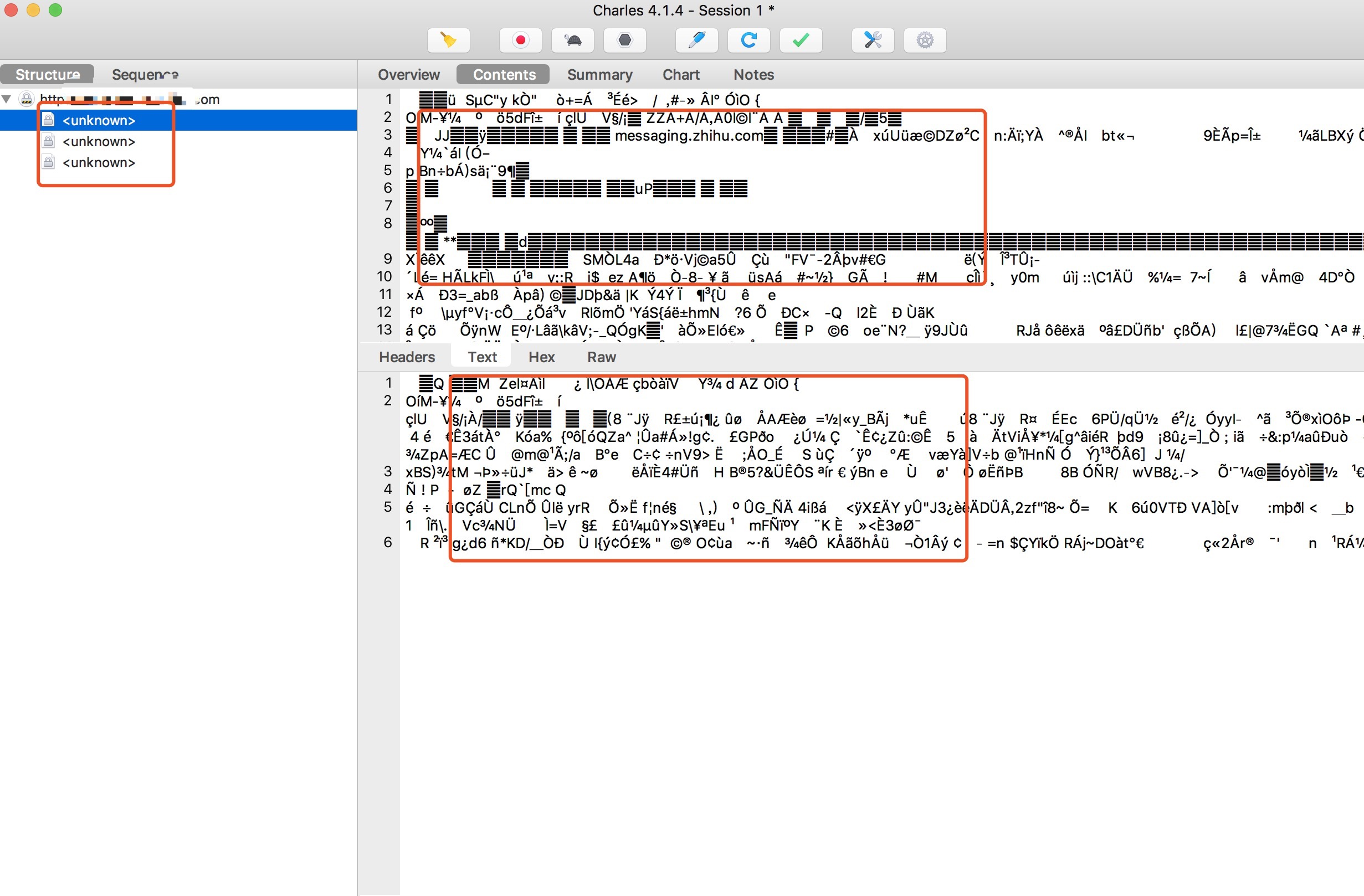 1.情景:抓包的域名下 全部是unknown,右侧出现了乱码