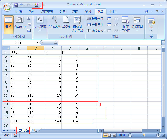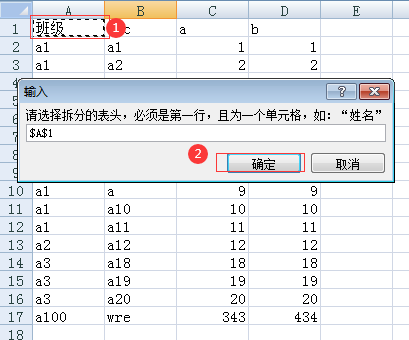 目标如下图所示:可以按班级拆分为a1,a2,a3,a100,生成四个execl文件,分别以这4个班级名为文件名。
