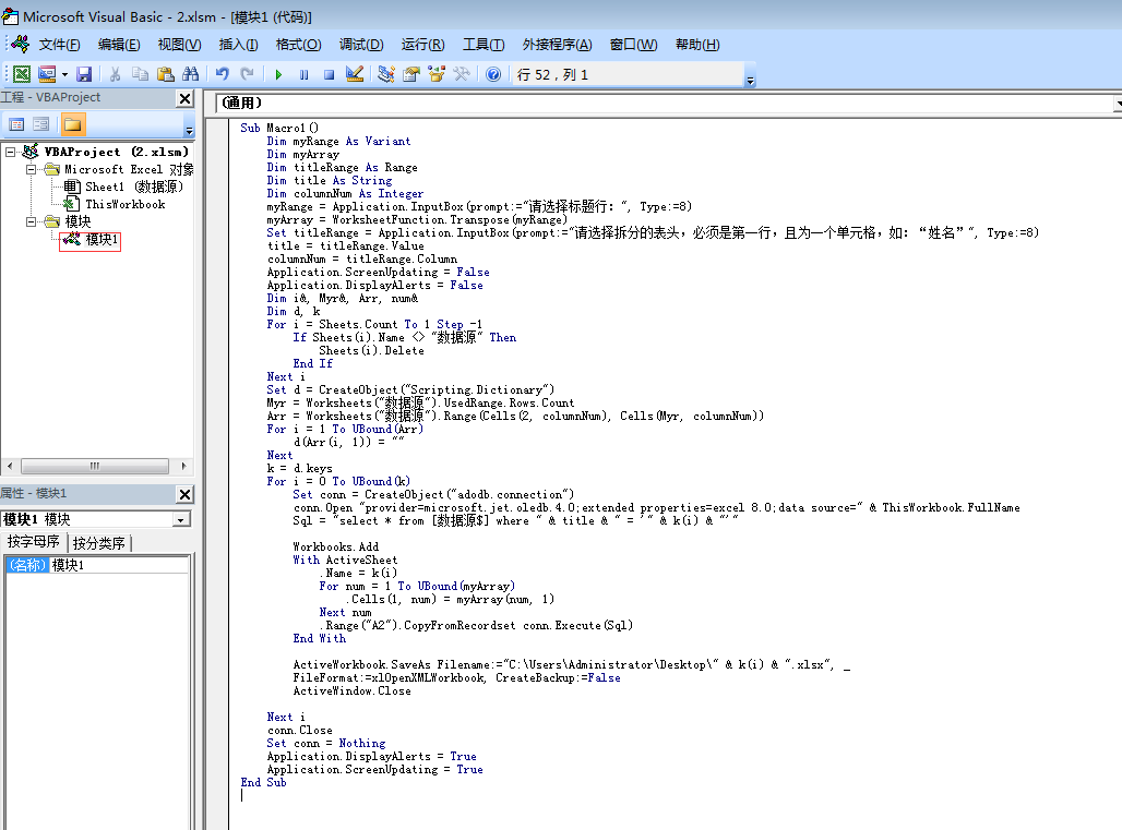 Set titleRange = Application.InputBox(prompt:="请选择拆分的表头,必须是第一行,且为一个单元格,如:“班级”", Type:=8)