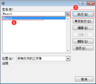 保存后回到execl界面,试图==》宏==》查看宏,如下图