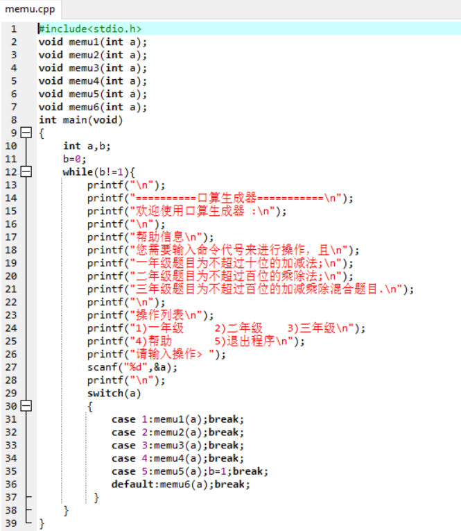 刚开始还不知道,该怎么编写,后面查阅了一些资料,再加上作业前言,才知道可以运用while语句和switch语句来编写。