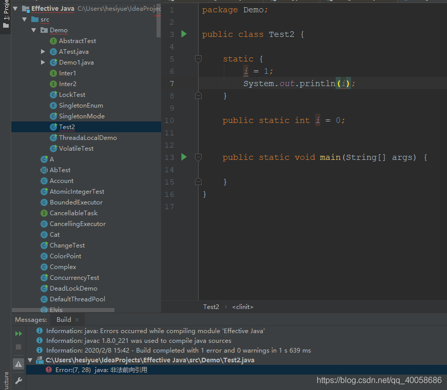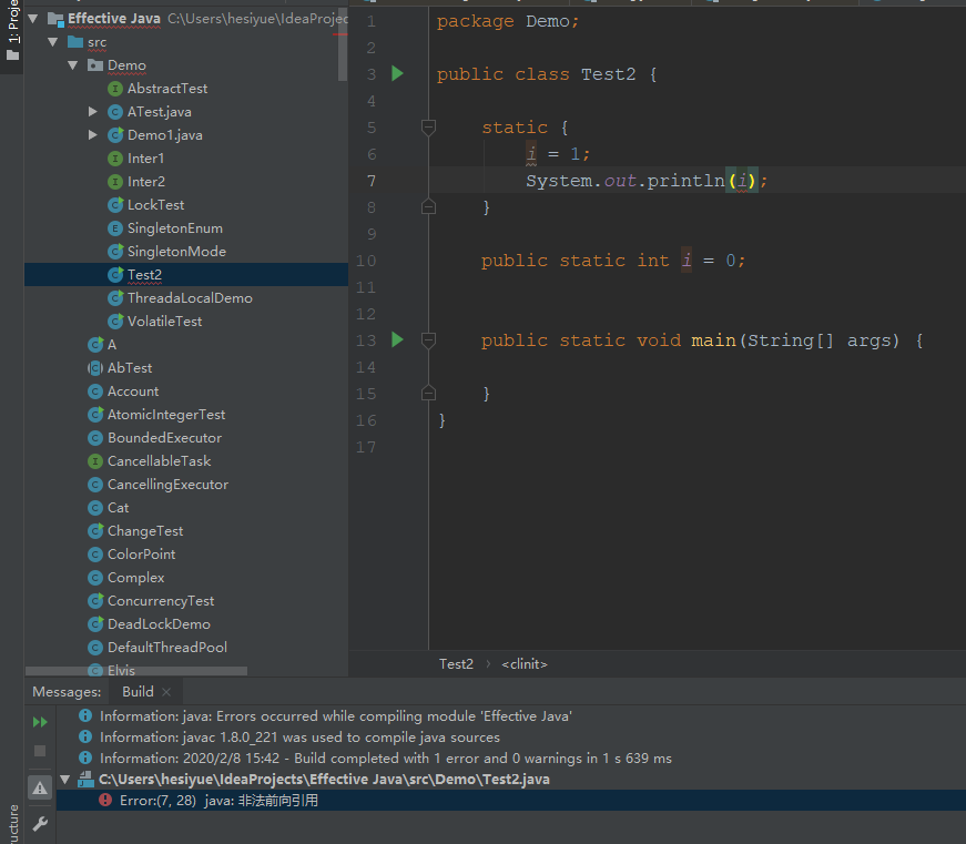 1)静态语句块中只能访问到定义在静态语句块之间的变量,定义在之后的变量在静态语句块中只能赋值,不能进行访问