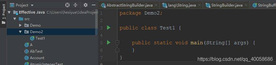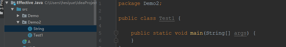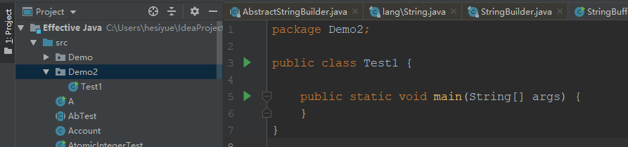 可以看到我自己写了一个类String,而Test1根本就不让我运行了,删除自己写的后就可以了