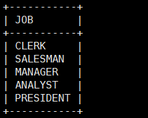用distinct关键字去除重复记录,比如查询EMP表中JOB的种类: