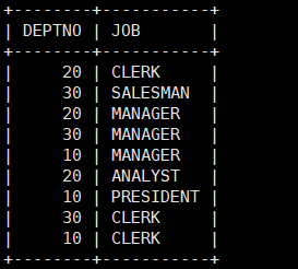MariaDB [powernode]> select distinct DEPTNO,JOB from EMP;