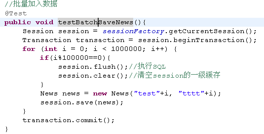 所以我们需要分段清理缓存。因为10万条能正常进行,所以我们就以10万条为一个单位,满了就先提交,再清除缓存,再加入10万条,再提交再清空,以此类推。所以如果是100万行数据的插入的代码如下: