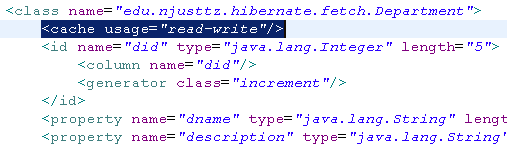 - 在Mapping文件中配置。注意<cache>的位置必须在<id>之前