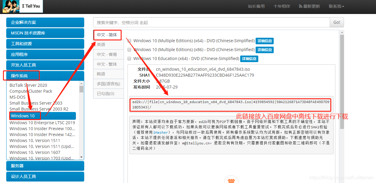 4、访问https://msdn.itellyou.cn/网站,下载win10系统