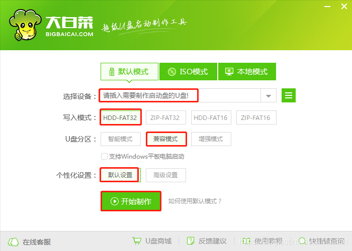 3、下载后安装大白菜软件后,打开大白菜软件进行软件安装,插入刚准备的U盘制作系统启动盘