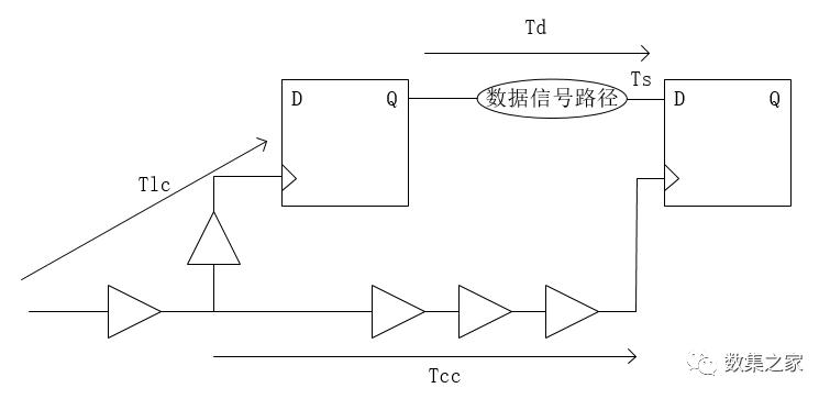 其中,Tlc为发射时钟最快路径延时值,Td为最快数据路径延时值,Ts为捕获时序单元的建立时间要求值,Tcc为最慢捕获时钟路径延时值,Tp为时钟周期。
