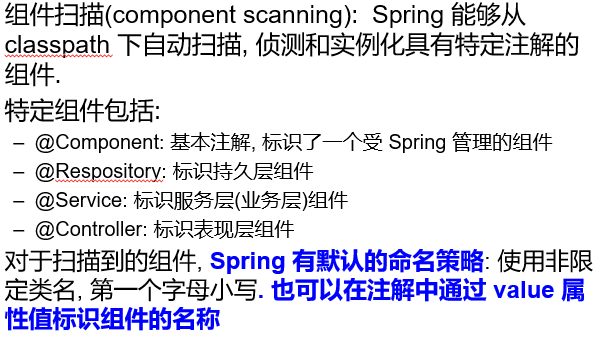 组件以一些先定义好方式(例如setter方法)来接受来自容器的资源的注入