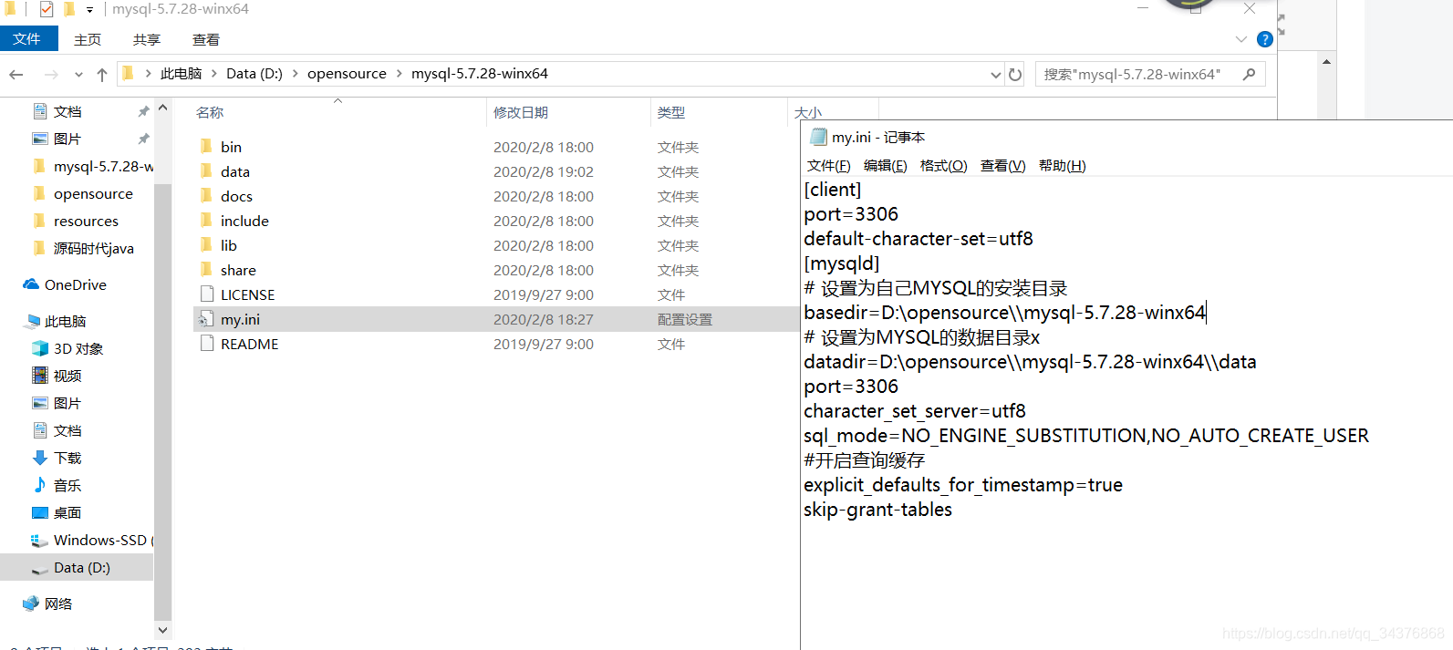 datadir=D:\opensource\\mysql-5.7.28-winx64\\data